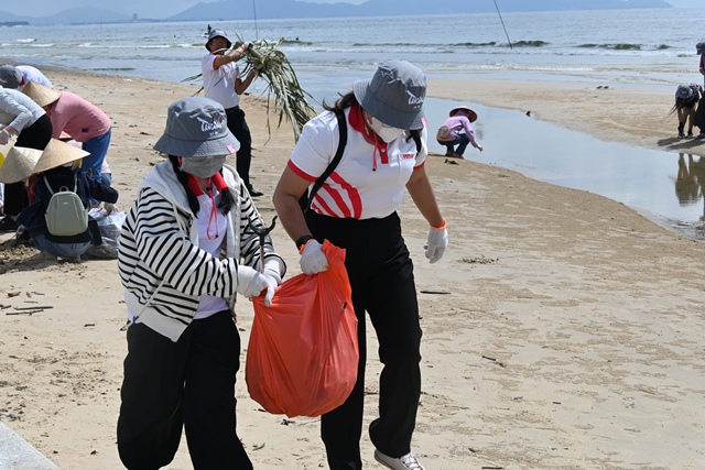 Các tình nguyện viên Công ty Vedan Việt Nam tích cực nhặt rác