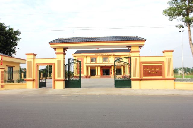 Các thôn trong xã đều có nhà văn hóa, đủ các trang thiết bị, có dụng cụ thể thao ngoài trời, đáp ứng nhu cầu hội họp, nhu cầu thể dục thể thao nâng cao sức khỏe của nhân dân. Ảnh Nhà văn hóa thôn Tam Cảnh