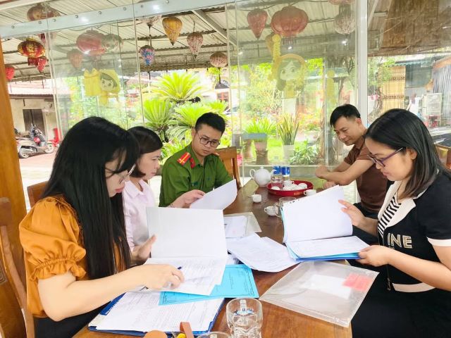 Đoàn kiểm tra hồ sơ pháp lý của cơ sở kinh doanh