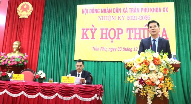 Ông Nguyễn Nguyên Hừng - Bí thư Đảng ủy, Chủ tịch HĐND xã Trần Phú phát biểu tại kỳ họp